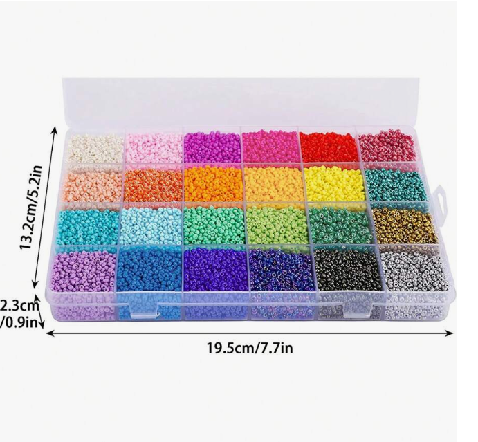 1 Box 2mm Small Glass Seed Beads, 24 Random Colors Craft Beads for Bracelets